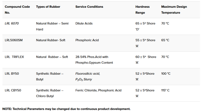 Begg Cousland Envirotec have a close collaboration with Lebracs Rubber in the Phosphoric Acid sector, where the service conditions are stringent with elevated temperature of up to 110 ºC, high pressure and Vacuum service. You can source these materials though us also. Lebracs Rubber has a range of corrosion resistant rubber compounds which meets the Service Conditions of Phosphoric Acid, Slurry, Fluorosilicic Acid and other Corrosive chemicals.
