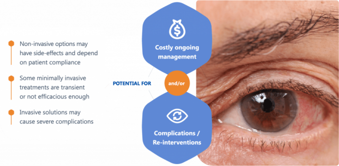 Traditional treatment options to delay glaucoma progression have significant limitations:
