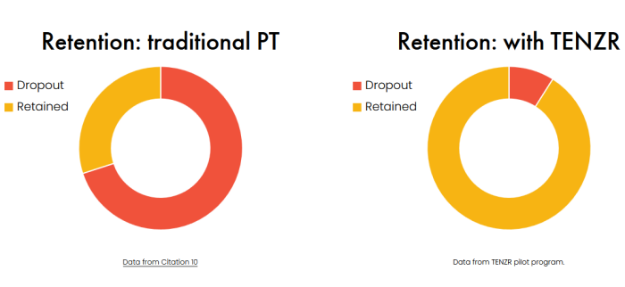By combining the patented TENZR Trainer & Tracker with your expert PT/OT guidance, your patients can stay motivated and be guided throughout their recovery journey, leading to better outcomes and happier patients.