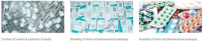 In the production of pharmaceuticals, all batches that do not meet the official standards must be destroyed in compliance with the legal regulations for chemicals and waste. Pharmaceuticals or expired medicines must be disposed of in accordance with these regulations. Shredding and rendering the unusable products unrecognizable greatly increases the safety standards of companies. Not only faulty batches from production, but also rejects and expired stock must be shredded or destroyed.