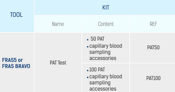 The PAT test is a photometric test that can be used in outpatient, research and pharmacy settings on a dedicated system (FRAS 5 or FRAS BRAVO) or in any laboratory equipped with a photometer.