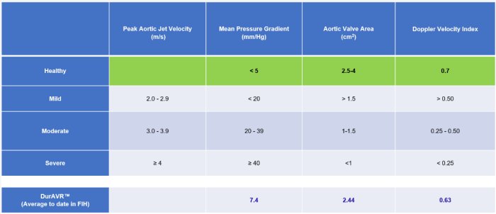 Table: Hemodynamic Parameters for Aortic Stenosis patients