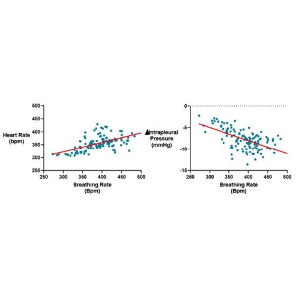 - Telemetry allowed to monitor the positive correlation between breathing rate vs. heart rate, and the negative correlation between intrapleural pressure and breathing rate (figure 3).