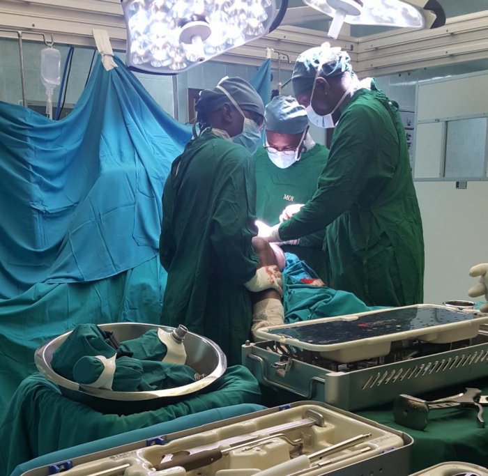 Dr. Samwel Nungu who operated on the first set of patients expressed his satisfaction with the drill and claimed that the drill could be maneuvered beautifully, resonating with the idea that they needed such tools. On the third day, the team conducted more training sessions and operated on four more cases: one new hip (59-year-old male), one elbow fracture (65-year-old male), one ankle reconstruction (21-year-old male), and one knee replacement (59-year-old female). The cases continued and by the end of the first week, the team treated seven more cases, all with Arbutus Medical’s new DrillCover PRO and SawCover kits.