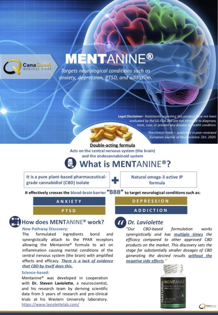 - New term revenue – launch of Mentanine® atCanaQuest Store, with compelling results for mental health, such as anxiety, depression and PTSD.