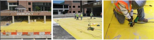 The hospital is capturing 30,000 square feet on lower level of parking deck and converting it to conditioned space. The level above this area is where emergency vehicles unload and this needed to receive new split slab waterproofing.