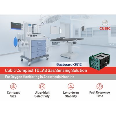 Recognizing the vital importance of precise oxygen monitoring, Cubic, an international manufacturer of advanced gas sensors and gas analyzers, has leveraged its mature technology platform of Tunable Diode Laser Absorption Spectroscopy (TDLAS) to develop the innovative compact oxygen gas sensor, Gasboard-2512, with ultra-high selectivity, millisecond-level of response time, and calibration-free stability, particularly suitable for anesthesia oxygen monitoring.