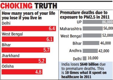 A study by the Indian Institute of Tropical Meteorology (IITM) in collaboration with the National Centre for Atmospheric Research (NCAR), Colorado has revealed that Delhi’s Pollution can reduce 6.4 Years from your Life. The study also shows that Uttar Pradesh and Maharashtra are likely to account for the highest number of premature deaths in India. The study is likely to further ignite concern over the need to improve air quality in the capital and urgently map its sources of pollution and their contribution to making Delhi an unhealthy city.