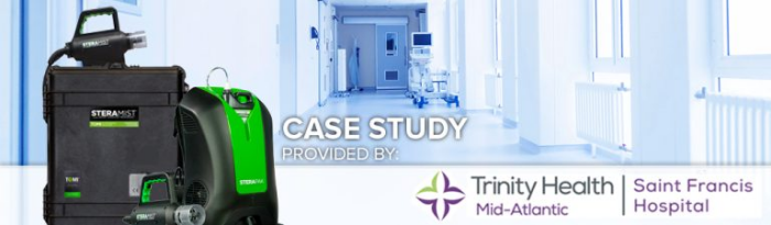 Saint Francis Hospital of Trinity Health in Wilmington, DE implemented SteraMist disinfection in 2017. Over the years, Saint Francis has been one of the top hospitals in keeping their Healthcare Associated Infection (HAI) rates down. With the use of SteraMist disinfection throughout their hospital, Saint Francis is able to keep C. difficle, MRSA, and central line-associated bloodstream infections at a minimum. They have incorporated SteraMist into their disinfection protocol because of its unique ability to destroy bacteria, viruses, and other microorganisms on surfaces and in the air.