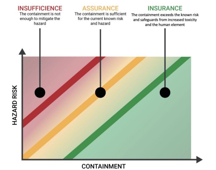 In the chart below, we can see that in typical logic, risk hazard and containment increase linearly for any application where containment is required. This thinking is common, but the top companies in the pharma and biopharma industries are looking at it differently.