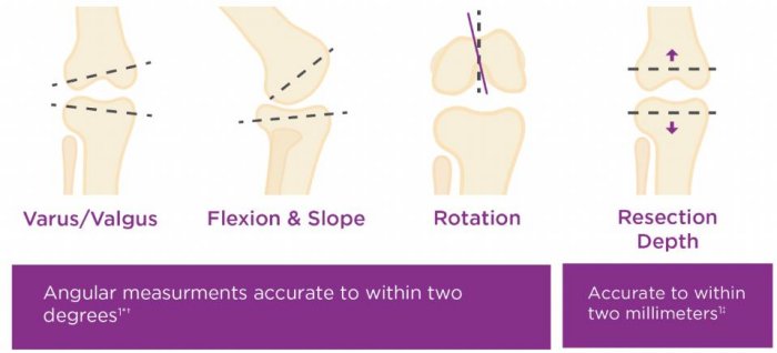 Operative TimeTo reduce intraoperative time-add, we designed a streamlined feature set that provides only relevant information to surgeons. The system provides the proximal tibial and distal femoral cut angles and resections. By focusing on these features, we give surgeons confidence in their implant alignment without adding unnecessary time to the procedure. Additionally, we made the registration process as simple as possible.