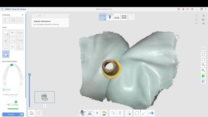 Medit’s software allows you to remove and pre-existing abutment and scan it outside the mouth. This allows you to find your margins without ever having to displace the tissue or reach hemostasis. Important matters to keep in mind with workflow