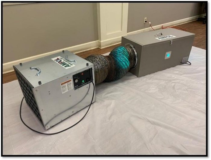 “We saw the need to make a better machine for cleaning the air,” Headley said. “We came up with the idea of using what’s already there, but making a machine to fit on the back of the negative air machine. As far as I know, we are the only ones to have done this.”