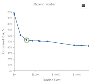 This pandemic planning exercise assumed that New York could face another 12-18 month pandemic and desires to create a contingency plan. The model identified ten major pandemic events and 22 commonly discussed pandemic control measures. The optimization of these measures showed how New York State could blunt the impact of future pandemics, while being highly cost effective -- showing how a set of 13 controls with a cost of $3 billion results in a $7 trillion benefit in risk reduction, as represented by the green circle on the efficient frontier image. This represents investment leverage of 2,283 times greater than the upfront cost.