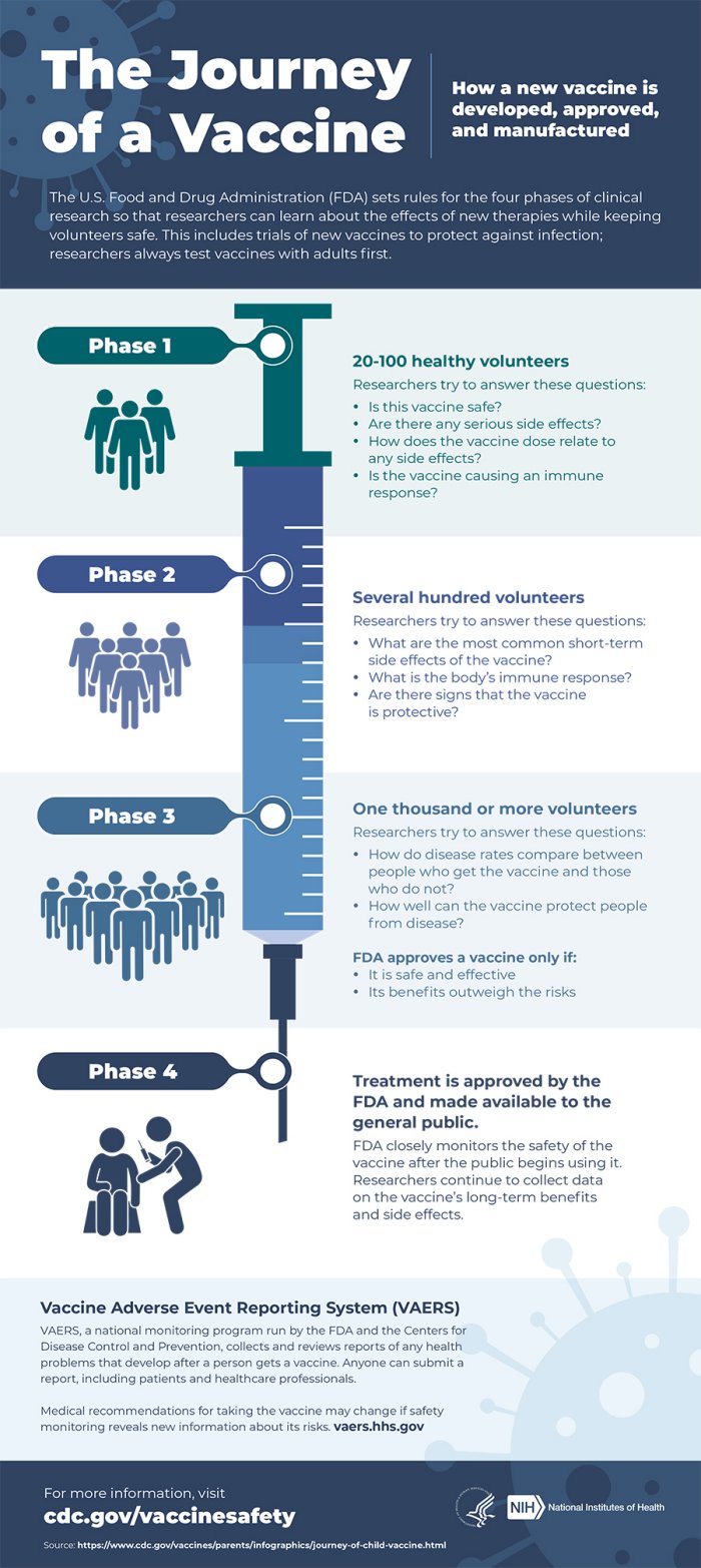 All vaccines go through clinical trials before being released to the public. This infographic shows the processes taken during vaccine creation to ensure a vaccine is safe for you and your family. Many people have expressed concerns about the adverse reactions that may be associated with the COVID-19 vaccine. According to the CDC, the COVID-19 vaccination is safe for individuals with common allergies but advise them to speak with their doctor before having a vaccination administered.