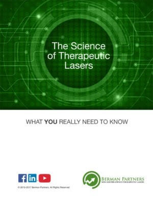 Frequently, we are asked to explain the science behind lasers. We created this e-book as a primer. We do not discuss specific lasers or manufacturers. We are happy to answer any questions you have. Flooding damaged, inflamed tissues with light photons promotes increased blood flow and increased production of pain reduction chemicals (e.g. endorphins) from the brain and adrenal glands. The result is significantly better oxygenation, promoting pain relief and faster recovery of damaged cells, with a cascade of the body’s natural healing mechanisms.