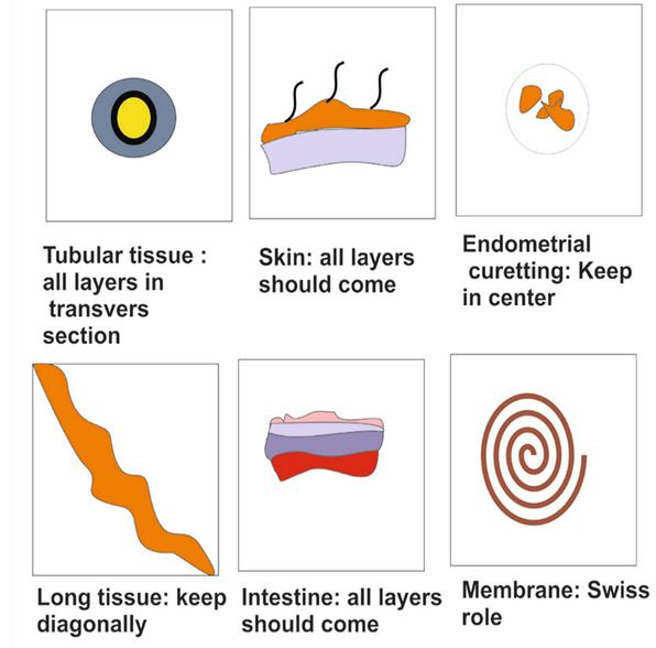 There are numerous techniques that you can use in tissue embedding. The image below illustrates some of the more common ones.