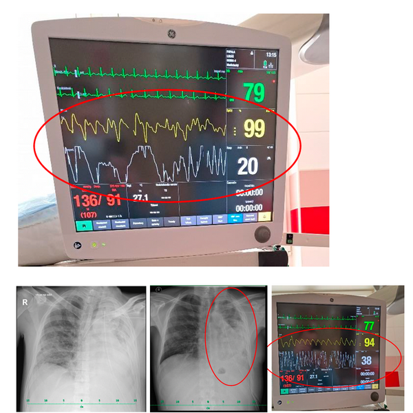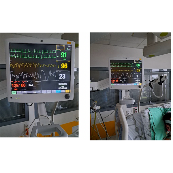 Patient after lung decortication. In the picture we can see especially the increase in saturation (SpO2) and improvement in respiratory rate.