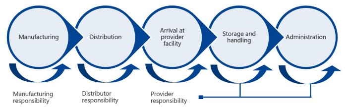 Manufacturers, distributors, public health staff, and health care providers are all responsible to ensure the cold chain is maintained once the vaccines are manufactured until they are delivered to the final user.