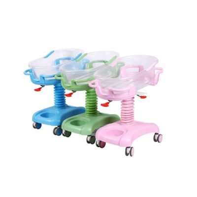 Head upward angle : 0-12 degree, Height Adjustable by Gas Spring, Easy for move & baby to communicate, Aluminium Column, Transparent and Hi-Intensity baby basin, PP cart Basis, Four Silent Wheels with cross brakes, dia 100 mm, Colour Available : Green, Blue & Pink, Dimension: 870x520x780-980mm, Hi-Low: 780-980mm