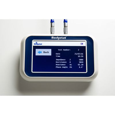 Four electrodes (Bodystat 0515) are placed in specific locations on the hand and foot The patient is ideally lying down for a couple of minutes to stabilise fluids. Attach the leads to each electrode, input data such as age, weight, height and gender into the hardware device (touch screen). The measurement takes one second and all results are immediately visible on a colour touch screen ready to print, view in an App or download into the software for analysis.