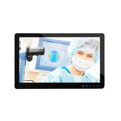 Medical display with slim design available with fully closed housing or with ventilation holes. Available in 16:9 format. Bright Full HD Panel for brilliant images. Modern True Flat Display for easy cleaning and disinfection. DICOM® compatible. Wide viewing angle. Anti-Reflective or Anti-Glare Glass. PCAP Multitouch Sensor with 10 point technology, operable by finger or latex gloves.