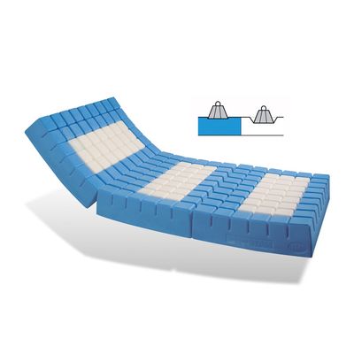 Entirely one-piece mattress: guarantees a perfect hold in its cover and adapts perfectly to the kinematics of medical beds with single and double folds. Independence and mobility of the blocks: the mattress adapts to the morphology of the patient, and effectively reduces the effects of shearing.