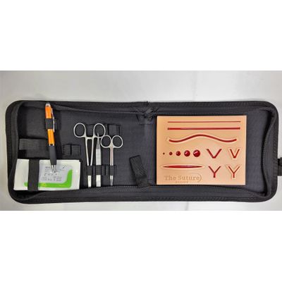 Kit Includes: Suture Buddy Suture Pad with Port Holes, Tools (Needle Driver, Tissue Forceps, Suture Scissors), Box of 12 Nylon Suture. (40), Suture Buddy Zip Up Carry Case, Stylus Pen