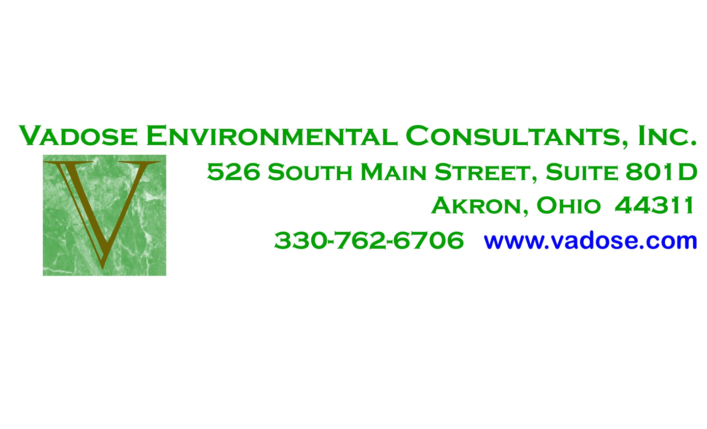 Founded in 1987 and headquartered in Akron Ohio, Vadose is an established name in environmental consulting specializing in the needs of municipal, governmental, institutional, commercial, and industrial clients. The diverse environmental experience with national consulting firms allows our highly qualified senior staff to serve local as well as national clients. It is always a priority to build lasting relationships with our clients and to act as their advocate. We also pride ourselves on our win-win relationships with architects, attorneys, engineers, real estate brokers, subcontractors and vendors as these partnerships help us bring projects to successful conclusion.