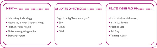 For four decades, analytica has been the leading international fair for state-of-the-art laboratory technology and pioneering biotechnology. No other trade fair in the world covers the range of subjects to do with the laboratory in industry and science in such breadth and depth, and on such a scale.