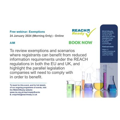 This free webinar will aim to review exemptions and scenarios where registrants can benefit from reduced information requirements under the REACH regulations in both the EU and UK, and highlight the parallel legislation companies will need to comply with in order to benefit.