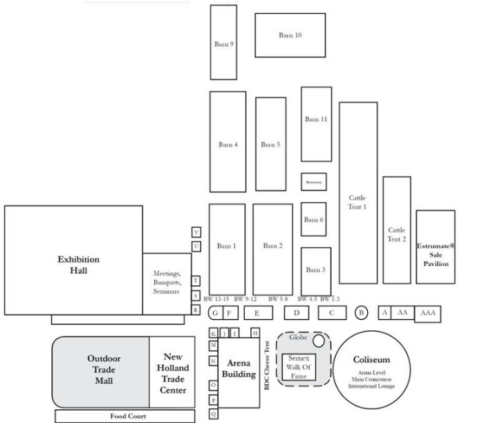 Commercial exhibits are located on-grounds in five main exhibit areas: Coliseum, Exhibition Hall, Arena Building, New Holland Trade Center and the Outdoor Trade Mall.