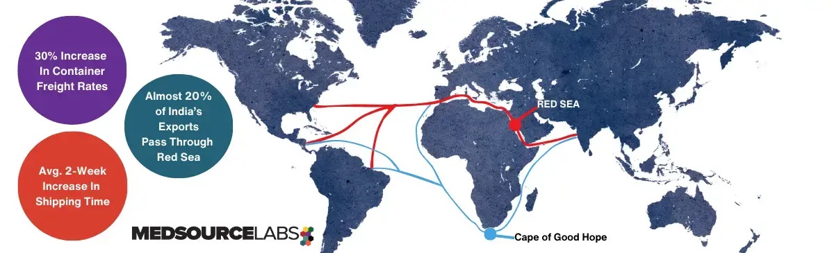Key raw materials for medical devices often need to be transported to manufacturing locations across various countries. Disruptions caused by the situation in the Red Sea and its cascading effects can significantly impact manufacturers’ ability to meet demand.In response to these challenges, MedSource Labs has implemented strategies to mitigate the impact of these disruptions, ensuring continuity in supply and production.