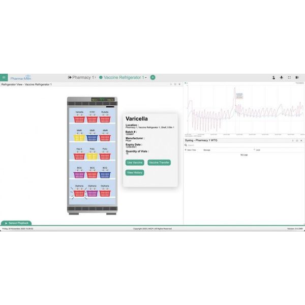 Centralized monitoring and tracking of vaccines through the AKCPro Server for Pharma-Mon. A user-friendly drag and drop interface allows the user to visualize vaccine shipments. Split bulk shipments into smaller batches right through to individual vaccine vials in medical refrigerators.