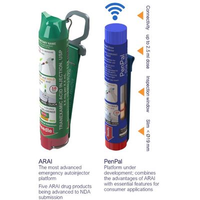 The ARAI autoinjector has been developed by Aktiv with the support of the DOD and the U.S. Department of Health and Human Services (HHS) Biotechnology Advanced Research and Development Authority (BARDA) as a next generation autoinjector platform to address the shortfalls of previous autoinjectors, by improving usability, reliability, robustness, and drug stability. ARAI is a versatile platform that can deliver up to 5 ml dose volumes, perform simultaneous injections of multiple, separately stored drug formulations, and automatically reconstitute drugs formulated in dry form. Aktiv is currently expanding the ARAI platform to include a consumer market autoinjector for biopharmaceuticals that will feature the same reliability, robustness, and usability benefits in a smaller form factor and with added data connectivity.