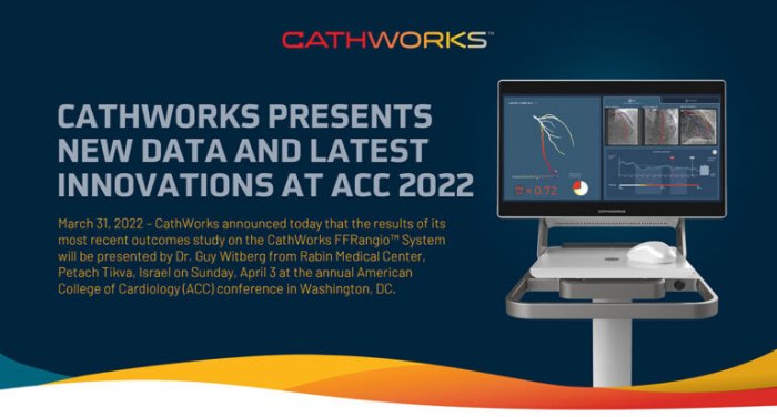 CathWorks announced today that the results of its most recent outcomes study on the CathWorks FFRangio™ system will be presented by Dr. Guy Witberg from Rabin Medical Center, Petah Tikva, Israel on Sunday, April 3 at the annual American College of Cardiology (ACC) conference in Washington, DC.