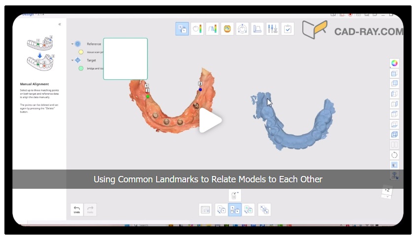 The traditional approach to these cases required a model of the arch with some suprastructure that could be used to relate it to the photogrammetry scan. This process can be quite arduous and involves lots of steps. Other current systems, like the Shining Elite allow you to merge models in the native scanning software. Alternatively, you must make sure you have common stitching abutments to related models to each other in CAD software. You can use common landmarks that are found in both models to accomplish this like in this demonstration