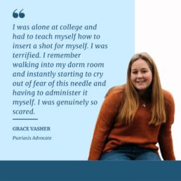 August is National Psoriasis Awareness Month. To bring awareness to the illness and injection challenges, we spoke with Grace Vasher and learned about her personal journey with Psoriasis. Grace is a nineteen year old college student studying elementary education.