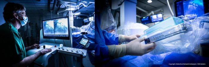 Prof. Stefan Verheye, Interventional Cardiologist at ZNA Middelheim, Antwerp, member of the European Association of Percutaneous Cardiovascular Interventions (EAPCI) and author of over 170 peer-reviewed papers (mainly investigating new approaches and innovative technologies), said: “I’m honored to be the first user in Belgium of this French vascular robotic solution. I was immediately very impressed by the ease of use of the platform and its level of precision. The robotic arm places the stent even more precisely than with the manual technique, down to a fraction of a millimeter. In addition, it allows us to work in a much safer and more comfortable setting because we are no longer directly into contact with harmful X-rays – which is of great concern to all physicians in this field. It also means that we no longer need to wear our lead apron which can often cause orthopedics injuries. Therefore, I performed five clinical robotic procedures in a comfortably seated position, without any X-ray exposure. This robotic solution is a first step toward a global revolution in interventional cardiology. I have absolutely no doubt that this solution will be widely taken up. I’m delighted to be among the pioneers of this new technological wave in Europe.”