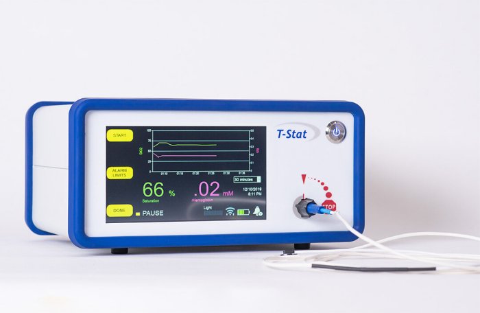 A complete redesign of the T-Stat was launched in 2020. New features included a sleek and strong exterior of powder coated metal, framed with a soft plastic bumper to prevent any damage in the hospital environment.