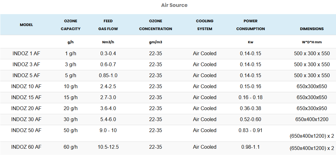 - Any other applications where the Ozone requirement is between 1 g/h to 60 g/h.