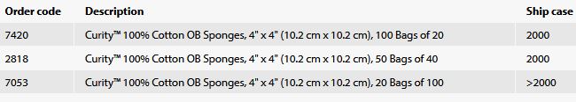 Curity - Model OB -100% Cotton Absorbent Sponges