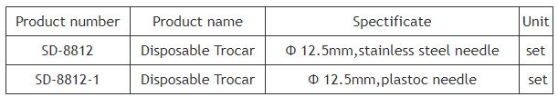 Brand: SHENDA SIAO, Department: Disposable Products, Product name: 12.5mm Disposable Trocar, Unit: set