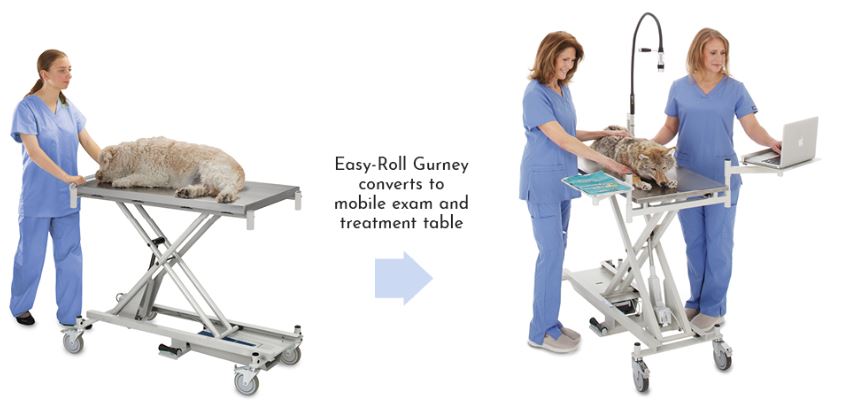 - Transport – The lightweight design, large hospital grade casters and comfortable push bar combine to make this table easy to navigate so you can easily roll between treatment, x-ray, prep, surgery or recovery – and even outdoors.