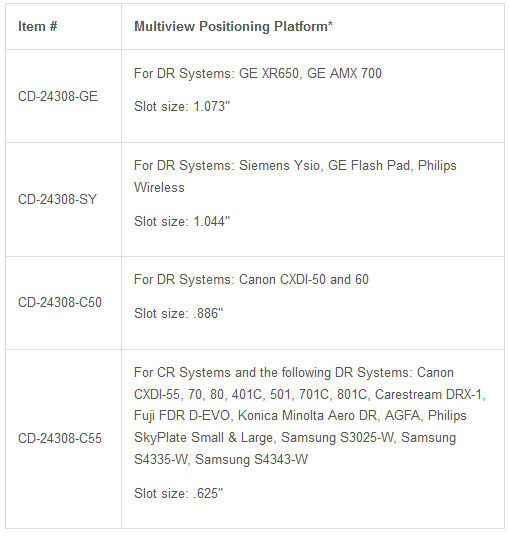 Designed with feedback from a leading medical imaging facility, the innovative Multiview Positioning Platform obtains multiple weight-bearing anatomical views. Helping to reduce patient movement and costly retakes, the Platform helps increases patient and professional satisfaction with four imaging-panel placement locations and two grab bars for patient stability.