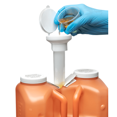 UrineTime™ II is a 24 hour urine proportioning system. The collected urine sample is poured into the attached funnel on the top of the system and then automatically split into two equal portions. This gives you 2 samples in the time it takes to general one.