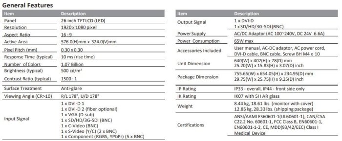 IntegriTech - Model CS-SMP-26 -26 Inch HD LED Medical Display