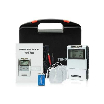 - It comes in a complete kit to get started. The TENS machine 7000 includes everything needed to get started, including the device, two lead wires, a four-pack of reusable premium electrodes, one 9V battery, a user manual, and a hard carrying case. And, if you have any questions about using it, our support team is just one call or email away to assist!