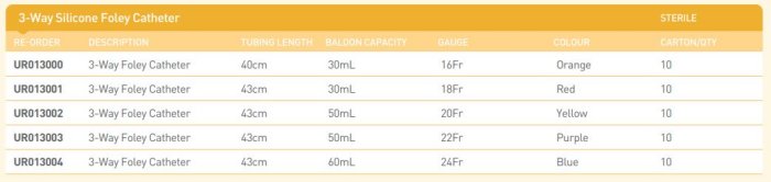 Model UR013000 - UR13004 -3-Way Foley Catheter Silicone