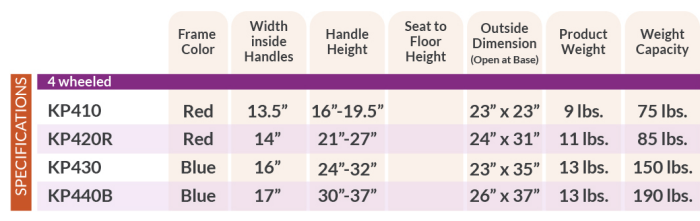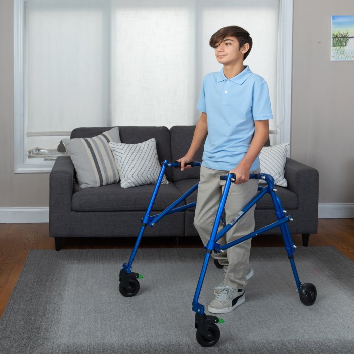 The 4-Wheeled Klip with front swivel wheels allows the user to turn and provides maximum maneuverability. It is available in four sizes to accommodate toddlers, children, teens and adults and is recommended for those with Cerebral Palsy and other neurological conditions.